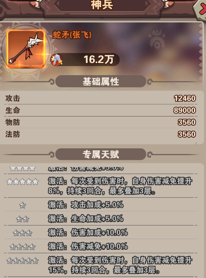 神兵:受伤提升自身的伤害减免(提升坦度抗伤)