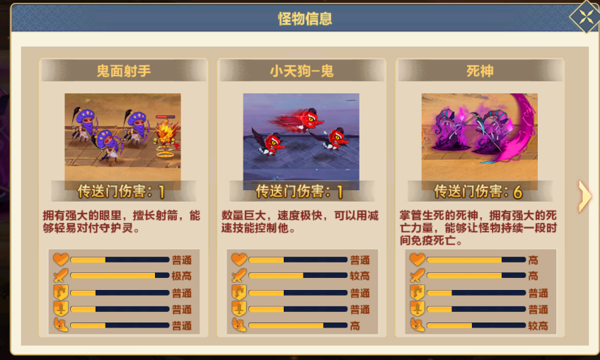 正所谓知己知彼百战百胜,进入每场战斗时,可查看右下角的敌情。针对本场战斗的怪物信息,我们可以灵活调整上阵英雄。特别是遇到一些隐形怪、遁地怪,那英雄的选择就非常重要了,需要对应选择能让隐身现行和能召唤怪的英雄。