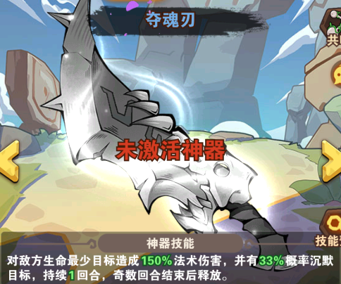 神器可通过强化提升等级,这边建议是要平均升每一个神器的等级,有共鸣等级属性加成的,而且也能增加每一个神器的属性伤害。