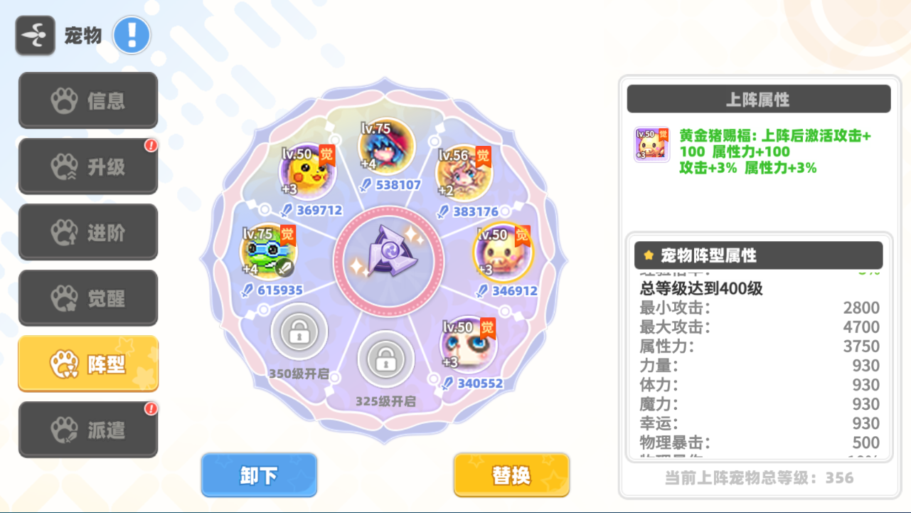 6.宠物阵形属性根据所有宠物的整体等级而变