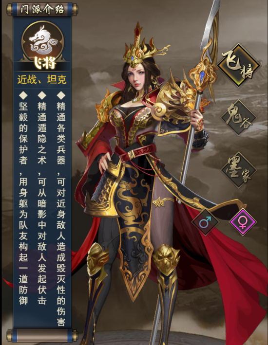 服务于战国七雄的民间战争组织。寻根骨最佳的战争孤儿,进行最严苛的训练                                               (通过考核的飞将,便可进入七国最强军团,转职为更强大的战士)
