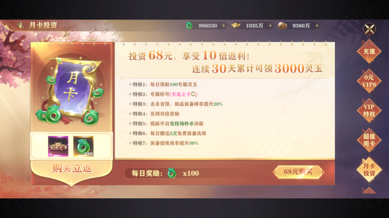 想长玩的,每日6元是必充的拿个倚天剑,前期战力膨胀得较快
