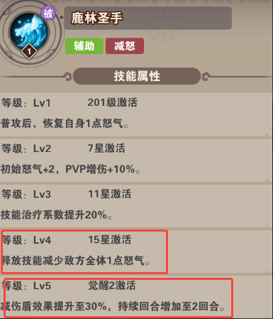 技能:全体治疗,赋予后排减伤护盾,被动敌方全体减怒